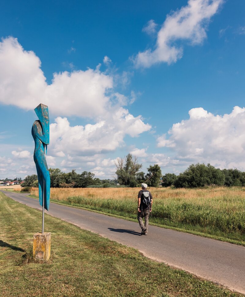 Es bleibt mir selbst überlassen, ob ich lieber in die Landschaft schaue oder kurz bei einer Skulptur oder Stele verweile. Die Kunstwerke begegnen mir mit Freundlichkeit und manchmal mit skurrilem Charme. Sie bieten mir ein Gespräch an. Sollte ich unterwegs jedoch ganz ins Gespräch mit mir selbst vertieft sein, ist das auch okay.