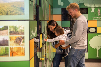 Am südlichen Rand des Nationalparks Kellerwald-Edersee bei Frankenau liegt die KellerwaldUhr. Die kostenfreie Ausstellung nimmt die Besucher*innen mit auf eine Reise: Von der Bronze- bis in die heutige Zeit lässt sich die Entwicklung zwischen Mensch und Wald im Zeichen der Buche entdecken.