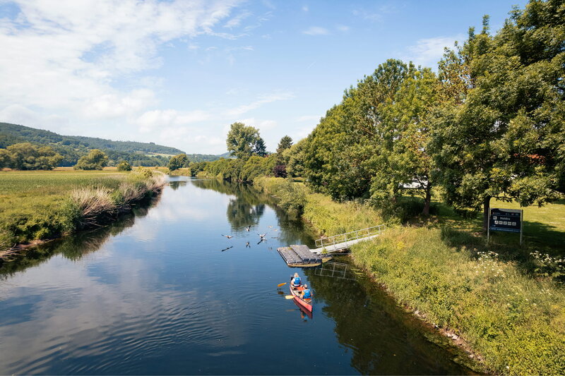 Wir können unsere Bootstour einfach umplanen, weil die Anleger zum Ein- und Aussetzen nur wenige Hundert Meter vom nächsten Bushalt entfernt sind. Kanurado setzt deshalb auf öffentliche Verkehrsmittel. Das erspart dem malerischen Tal viel Autoverkehr und wir kommen entspannt zurück. Irgendwann werden wir für weitere Etappen und Entdeckungen zurückkehren – schließlich sind noch viele Kilometer zu paddeln, bis sich Werra und Fulda vereinen.