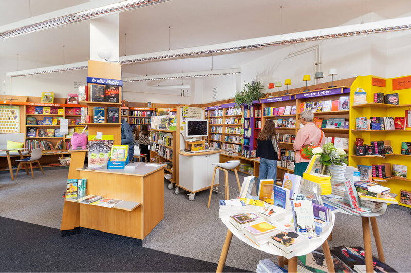 Lotta steht mittlerweile vor dem Regal mit den Leseempfehlungen, die Fächer sind mit den vier Namen des Buchhandlungsteams markiert. „Jeder hat ja ganz eigene Lesegewohnheiten, das ist bei uns vieren natürlich auch so“, erklärt Inhaberin Müldner. „Im Laufe der Jahre entwickeln sich dann ganz persönliche Passungen: Wir kennen nicht nur den Geschmack unserer Kundinnen und Kunden, umgekehrt orientieren viele sich auch gezielt an unserem jeweiligen Geschmack.“ Zu jedem Titel, der Lotta anspricht, kann Elke Müldner etwas sagen. Sie weiß, wovon sie spricht, ihre Leidenschaft steckt an. Schließlich entscheidet sich Lotta für Mein Name ist Estela, einen Roman aus Chile über eine junge Haushälterin. „Keine leichte Kost, aber sehr dicht erzählt und intensiv.“
