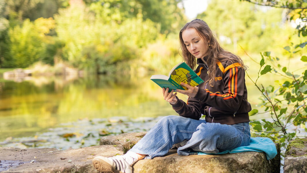 In Wolfhagen lässt es sich gut lesen: Einer der schönsten Leseorte der Fachwerkstadt ist der Stadtpark Teichwiesen. Ob am Wasser, unter Bäumen oder auf einer der Liegewiesen, hier findet jeder ein ruhiges Plätzchen.