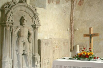 Das von einer hölzernen Tonne überspannte Langhaus wurde 1457 zum ersten Mal erneuert und in den Jahren 1606 und 1923 um jeweils ein weiteres Querhaus erweitert. Im Innenraum ist es von einer doppelten Empore umgeben. Der Chorraum wird von einem spitzbogigen Triumphbogen geöffnet. Besonders zu erwähnen sind die Fresken aus dem 14. Jahrhundert sowie Schrift- und Wappengrabsteine aus dem 16./17. Jahrhundert, darunter der Epitaph des Ritters Georg von Reckrodt (1558), dem Obristen des Schmalkaldischen Bundes und persönlichen Begleiter Landgraf Philipps von Hessen. Seit Ostern 2018 ist die Burgkirche auch "Radwegekirche".