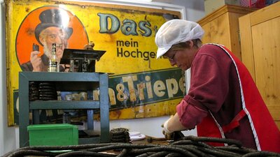 Entdecken Sie ein fast vergessenes Handwerk live. Tauchen Sie mit allen Sinnen in die Welt des Tabaks ein und lernen Sie ein altes, fast vergessenes Handwerk kennen. auch wenn die Produktion in Witzenhausen eingestellt worden ist, eine ehemalige Mitarbeiterin der Kautabakmanufaktur zeigt die Herstellung des Kautabaks von der Auswahl der Zutaten über das handwerkliche Verspinnen des Tabaks bis hin zur Soßierung und Reifung.
