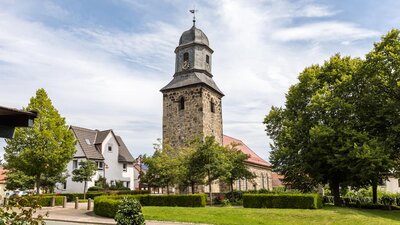Auf einer kleinen Anhöhe im alten Ortskern von Obervellmar steht die rund 600 Jahre alte Kirche, die bis zur Reformation Marienkirche hieß. Sie wurde im spätgotischen Stil errichtet und bot der Dorfbevölkerung im 14. und 15. Jahrhunderts Schutz vor vandalierenden Banden. Das bereits viel früher an gleicher Stelle eine noch ältere Holzkirche gestanden haben soll, belegt eine Steinplatte im Kircheninneren. In dem gut 25 m hohen Turm mit 1,5 m dicken Mauern befinden sich 3 Bronzeglocken, die ältesten aus den Jahren 1440 und 1444. Orgelbaumeister van Heeren aus Gottsbüren baute 1773 die mit über 1.000 Zinn- und Mahagonipfeifen bestückte Orgel, die bis heute für die musikalische Umrahmung der Gottesdienste sorgt. Das Kircheninnere ist geprägt vom calvinistischen Glauben. Die Ausstattung beschränkt sich daher auf einen schlichten Holzaltar und die Kanzel. Der lichtdurchflutete Raum und die Stille des Ortes laden zum Verweilen ein.