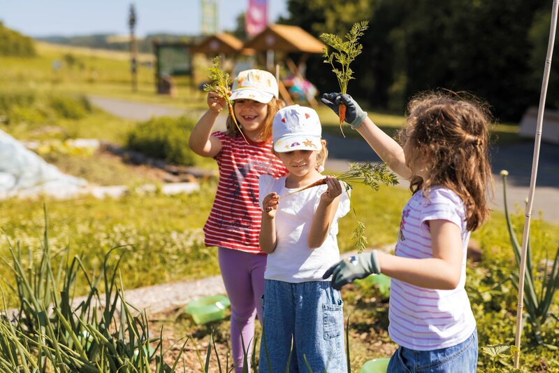 Die Kinder finden nur wenige Käfer und hoffen auf eine reiche Ernte bei der eigenen Pflanze. Sally erklärt, dass sie die Kartoffeln gemeinsam verarbeiten werden, wenn es so weit ist. Das ist das Stichwort. „Ich hab Hunger!“ Tatsächlich wird noch geerntet. Trupps von zwei bis drei Kindern bekommen jeweils eine Aufgabe. Salat und Karotten sind schnell gebracht und gewaschen, der Kohlrabi aber ist tückisch. Er lässt sich auch mit Verstärkung nicht finden – bis Sally nachhilft.