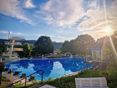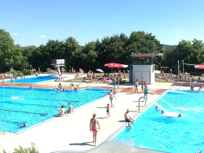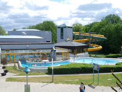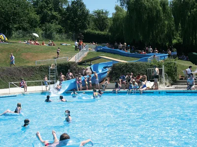 Das Freizeit-Freibad hält Angebote für jeden Geschmack bereit. Wenn Sie sich sportlich betätigen möchten, nutzen Sie das Schwimmerbecken. Zum Spielen und Austoben stehen der Nichtschwimmerbereich mit großer Wasserrutsche sowie ein 1-m- und ein 3-m-Sprungbrett zur Verfügung. Auch die Kleinsten können sich in der separaten Kinderbadelandschaft vergnügen. Entspannung finden Sie auf der großen Liegewiese und auf der Sommerterrasse mit angrenzender Cafeteria.