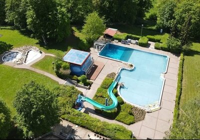 Vergnügen Sie sich in zwei beheizten Becken sowie einem Kinderbecken in unserem schönen Waldschwimmbad. Neben einer großen Liegewiese finden Sie auf dem Gelände auch eine Schwimmbad-Gaststätte mit Sonnenterasse sowie eine Tischtennisplatte, ein Groß-Schachfeld und einen Beach-Volleyballplatz. Als Highlight steht Ihnen zudem eine 23-Meter Rutsche zur Verfügung.
