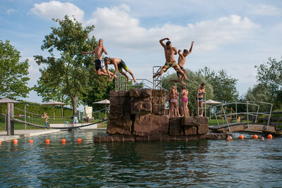 Das Naturbad liegt mitten im Grünen und ist umgeben von terrassenförmig angelegten Liegewiesen, von denen aus Sie einen herrlichen Blick auf die umgebende Landschaft haben. Das angrenzende moderne Hallenbad bietet Ihnen unter anderem einen 50 qm großen Kleinkinderbereich mit Rutsche, Spielkrokodil und weiteren Attraktionen. Ein Bistro und ein kleiner gepflegter Saunabereich runden das Angebot ab.