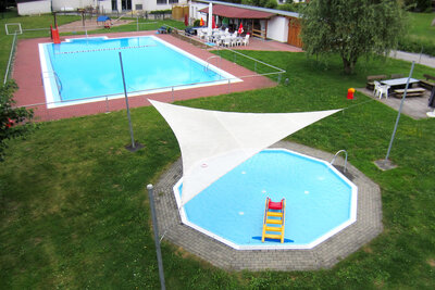 Sowohl kleine Kinder als auch Erwachsene kommen im solarbeheizten Freibad Ehringen auf ihre Kosten. Für die ganz Kleinen steht ein separates Planschbecken zur Verfügung. Die Größeren können sich an vielen Spielgeräten im Wasser und drumherum vergnügen.