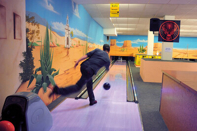 Auf den 7 Bahnen der Bowlinganlage lässt sich sportliche Betätigung mit Geselligkeit und Spaß verbinden. Direkt hinter den Bowlingbahnen, die zeitweise in stimmungsvolles Schwarzlicht getaucht werden, können Sie zwischendurch in gemütlicher Runde essen und trinken. Für Kinder ist eine spezielle Bowlingbahn vorgesehen.
