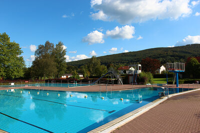 Das Bad bietet neben Schwimmerbecken, Sprungturm, Nichtschwimmerbecken mit Rutsche und einem „Babybecken“ reichlich sonnige und auch schattige Plätze auf der Liegewiese, Spielmöglichkeiten für kleinere Kinder, ein Beach-Volleyballfeld und Platz für andere Aktivitäten.