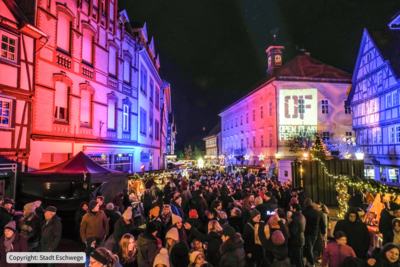 Der Arbeitskreis Open Flair organisiert den Weihnachtsmarkt in Eschwege und sorgt durch eine außergewöhnliche Immulmination für eine ganz besondere Stimmung. Eine bunte Vielfalt an Ständen mit handwerklichen und weihnachtlichen Produkten aus der Region laden zum Bummeln und Verweilen ein. Das kurzweilige Bühnenprogram begleitet den Weihnachtsmarkt, ergänzt durch ein Kinderprogramm mit Mitmachaktionen.